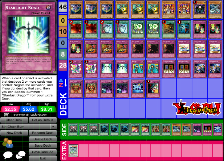 Esse garoto é o mais novo do top. Ele montou esse deck numa build "diferente" da build tradicional, onde o foco é o dano por efeito quando o oponente ataca. Para impedir Heavy Storm ele usa 2 copias e Starlight Road, o que é interessante. No mais, é um Chain Burn normal.