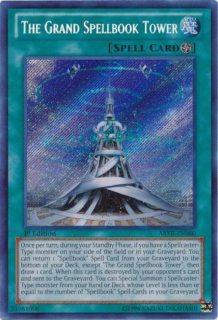 “Uma vez por turno, durante sua Standby Phase, se você tem um monstro do tipo Spellcaster em seu lado do campo ou em seu Cemitério: Você pode retornar 1 Carta Mágica "Spellbook" do seu Cemitério para o fim do seu Deck, exceto "The Grand Spellbook Tower", então compre 1 carta. Quando esta carta é destruída por uma carta do seu oponente e enviada ao Cemitério: Você pode invocar por Invocação-Especial um monstro da sua mão ou Deck cujo Nível seja igual ou menor ao número de Cartas Mágicas "Spellbook" que estão em seu Cemitério.”