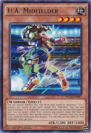 Todos os U.A. tem o mesmo efeito: Você pode voltar um U.A. do campo para fazer Special Summon de um U.A. da mão, podendo assim usar um para atacar e deixar sempre o Midfielder na mão para usar o efeito do campo.