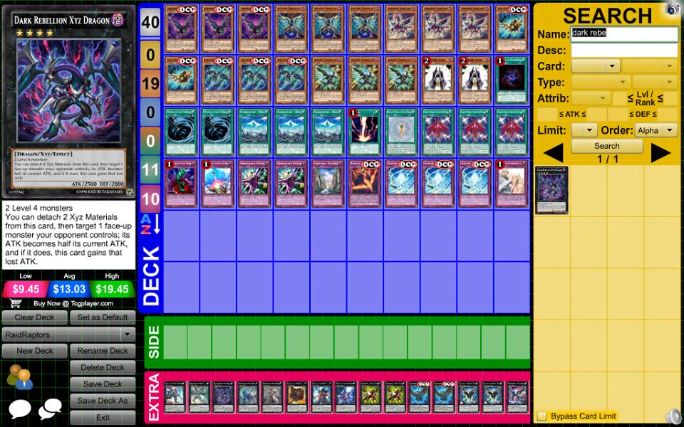 O deck é relativamente rápido você faz muitas Xyz sem perder a vantagem da mão devido aos efeitos de Mimicry lanius, Fuzzy lanius, Force Stryx e Nest, sempre que começar com Vanishing Lanius e outro Raidraptor qualquer você terá uma boa fluência no jogo, mas o deck infelizmente sofre com presença de campo já que nenhum Raidraptor passa de 2000 pontos de ataque o que se torna problemático contra decks com grandes beaters, as armadilhas possuem bons efeitos e a counter trap Raptor’s Gust é muito boa já que nega qualquer magia ou armadilha com o custo simples de controlar um RaidRaptor card.