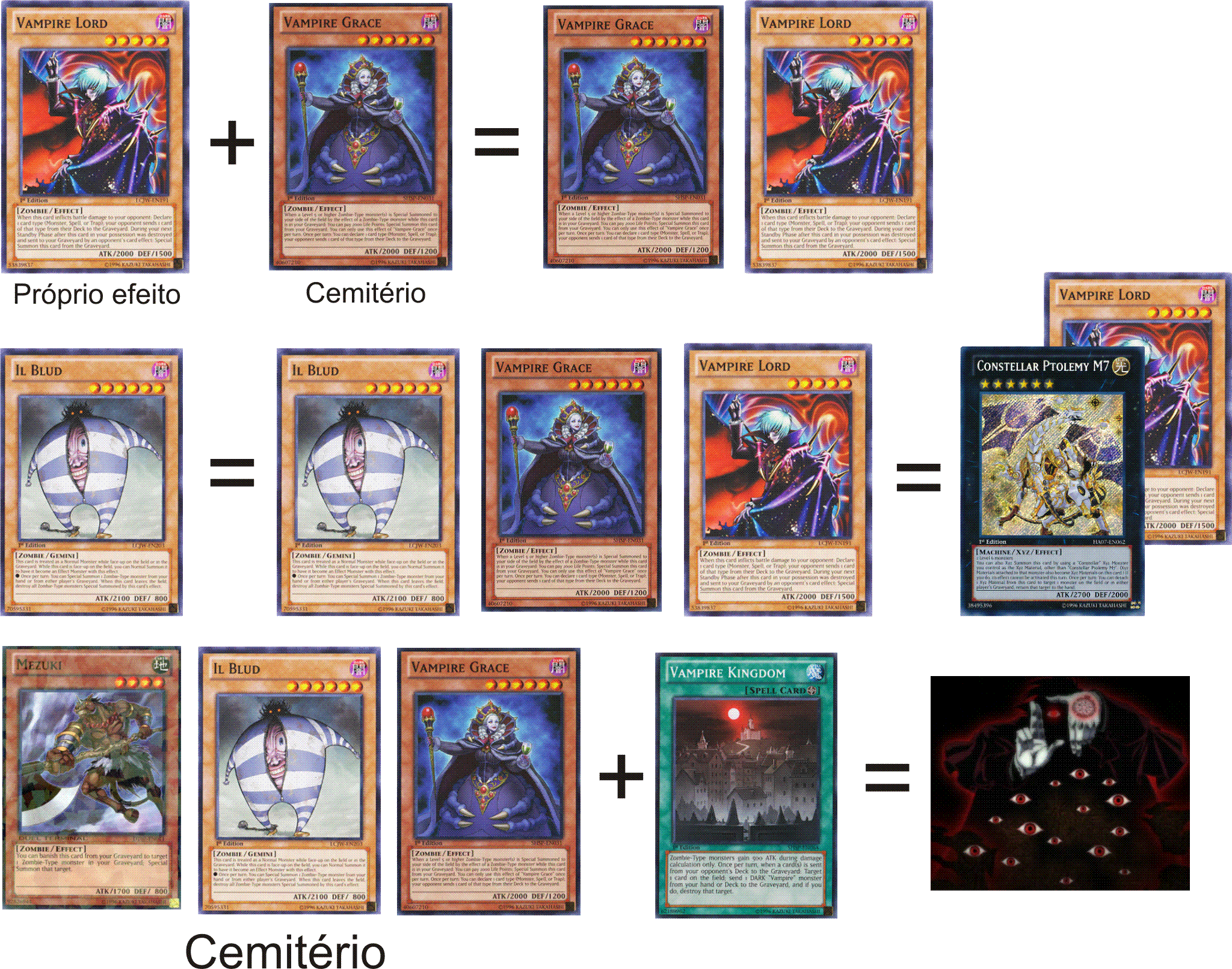 Mas o mais importante é poder usar toda a gama de suportes que os zumbis usam pois todos os cards de monstro "vampire" são também zumbis, ou seja, call of the mummy, zombie master, plaguespreader , Book of life, mezuki dizem oi.