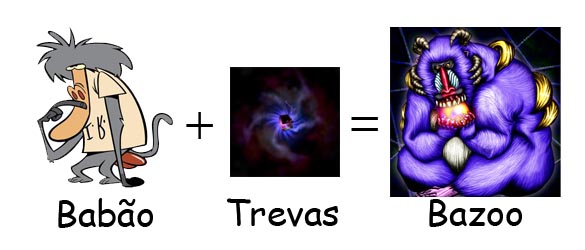 Bazoo é um macaco roxo muito loko, comendo uma esfera do dragão com olhar demoniaco, chifres de beozebu e pedaços de cabelo do Goku Super Sayajin 3!!! Se você viu tudo isso, parabéns...você tem sérios problemas psicológicos assim como eu! Hahaha.