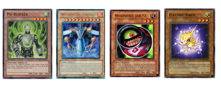 Esses são os "Chefões" do deck. Ophion impede a special summon de monstros de level 5 ou maior. O outro, rouba um monstro do oponente. Por isso a escolha mais sabia é usar efeitos de monstros que sejam "fracos" para não encoraja-lo a rouba-lo. A primeira opção é Electric Virus, que é ótimo, ainda mais se você puder tributar o Ophion. Outra ideia é o grande Metaion, the Time Lord que não pode ser destruído. Ele ainda é vulnerável a Compulsory,Prison e Fiendish Chain, mas se funcionar, é uma ótima opção. Morphing Jar #2 talvez ajude, já que vai se livrar do xyz, e com sorte vai mandar varias Spell/Traps do deck dele para o cemitério, principalmente se ele mandar a Pandemic. Por fim, o já citado Psi-Blocker que pode anular o efeito do Ophion no seu turno e deixa-lo livre para jogar.