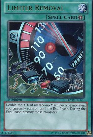 Tinha alguém muito drogado quando inventou de fazer essa carta. Dobrar o ataque de TODOS os monstros maquina que você controla até a End Phase, somado ao fato de ser um Quick-Play e poder ser ativada no calculo de dano. É isso mesmo? ah beleza, me parece justo! Ta certo, ta certo, ela tem um ponto negativo que é destruir todos esse monstros na End Phase. Mas isso não ajuda muito quando você leva um OTK né?