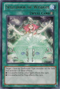 É aqui que as cartas recem-chegadas começam a aparecer. Spellbook of Wisdom permite que um Spellcaster no campo se torne invulnerável a Spells ou Traps no turno em que é ativada. Um efeito bem interessante, já que , por ser quick-play, ela pode ser ativada em chain à carta que iria afetar o Spellcaster. Ótima quick-play que merece a 8° posição do nosso post.