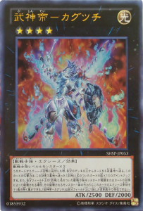 Mais um ser imortal para acompanhar Bijin Yamato. O diferencial de kagutsuchi é que só precisa de 2x beast-warrior monsters ou seja é possível fazer com outros cards e não só bujin como susanowo. Sou efeito permite mandar 5 cards do topo e para cada bujin enviado ele ganha 100 atk, bem fazendo a matemática é bem possivel pilhar 2 bujin de boa e com tenki ativa já deixa ele com 2800 ATk. Mas seu principal efeito é sua habilidade de se manter em jogo pois ele não pode ser destruido até duas vezes por batalha ou efeito, mas ai vem a sacada, muitos cards também tem essa habilidade então por que ele é melhor? Os suportes para bujin são extremamente eficazes e defendem ele contra os resto dos cards que detonariam ele, como exemplo turtle contra D. prison ou big eye, e crane contra monstros de 3000 atk caso você queira manter overlays para futuras ocasiões e tombando 5 do topo do deck é garantia de possuir bujins para esse uso.