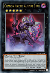 You can detach 1 Xyz Material from this card, then target 1 monster in your opponent's Graveyard; Special Summon that target to your side of the field, but if you do, only that monster can attack for the rest of this turn. You can only use this effect of "Crimson Knight Vampire Bram" once per turn. During the Standby Phase of the next turn after this card you controlled was destroyed by your opponent's card (either by battle or by card effect) and sent to your Graveyard: Special Summon it from the Graveyard in face-up Defense Position.