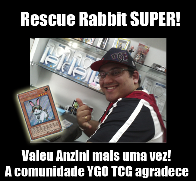 Para quem não sabe, nosso amigo Anzini estava QUASE comprando o Rescue Rabbit - Secret, e para quem também não sabe, a Konami tem um espião que sabe todas as vezes que ele vai gastar grana com alguma carta e ai eles lançam a carta Super, por isso ficamos gratos mais uma vez Anzini kkkk